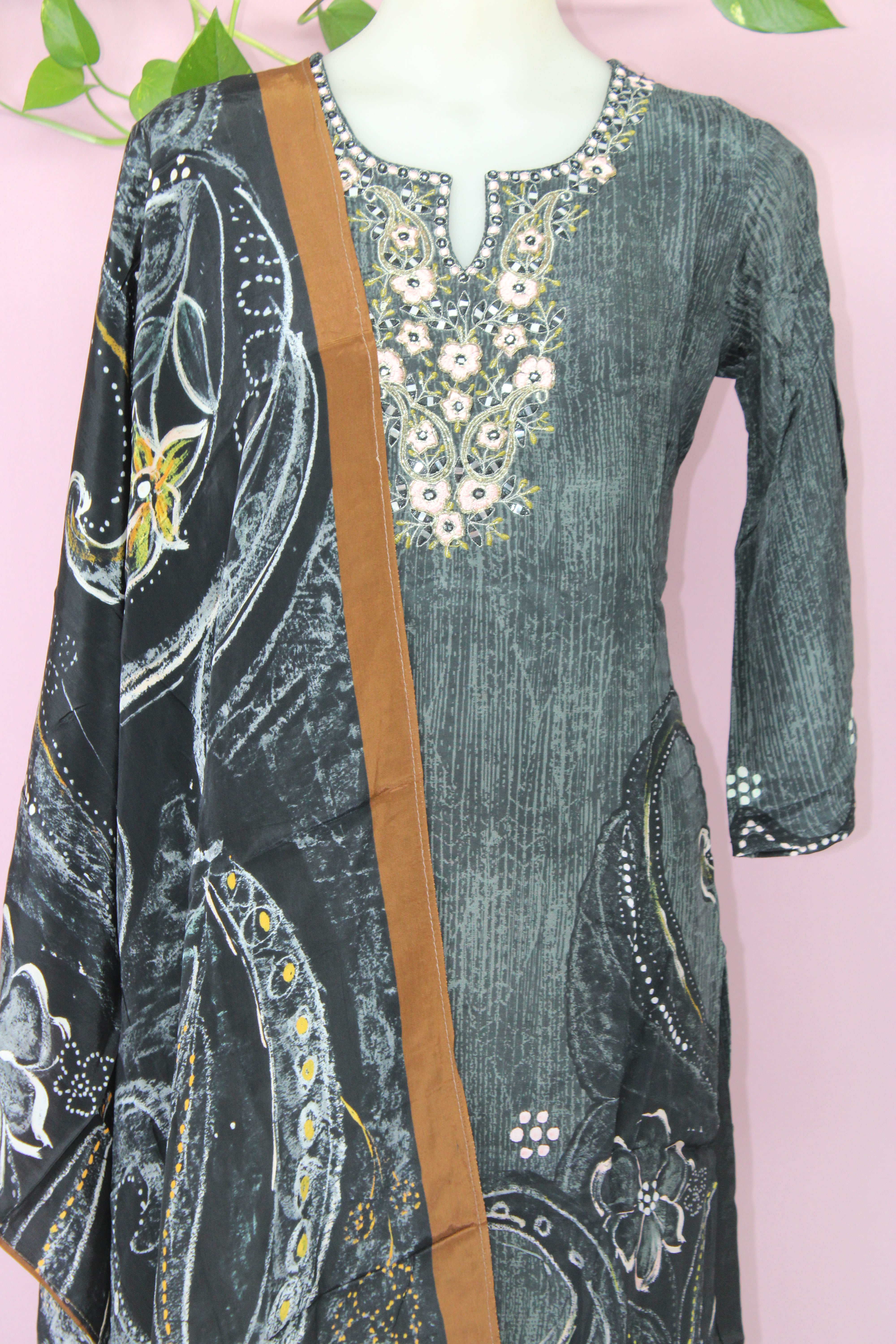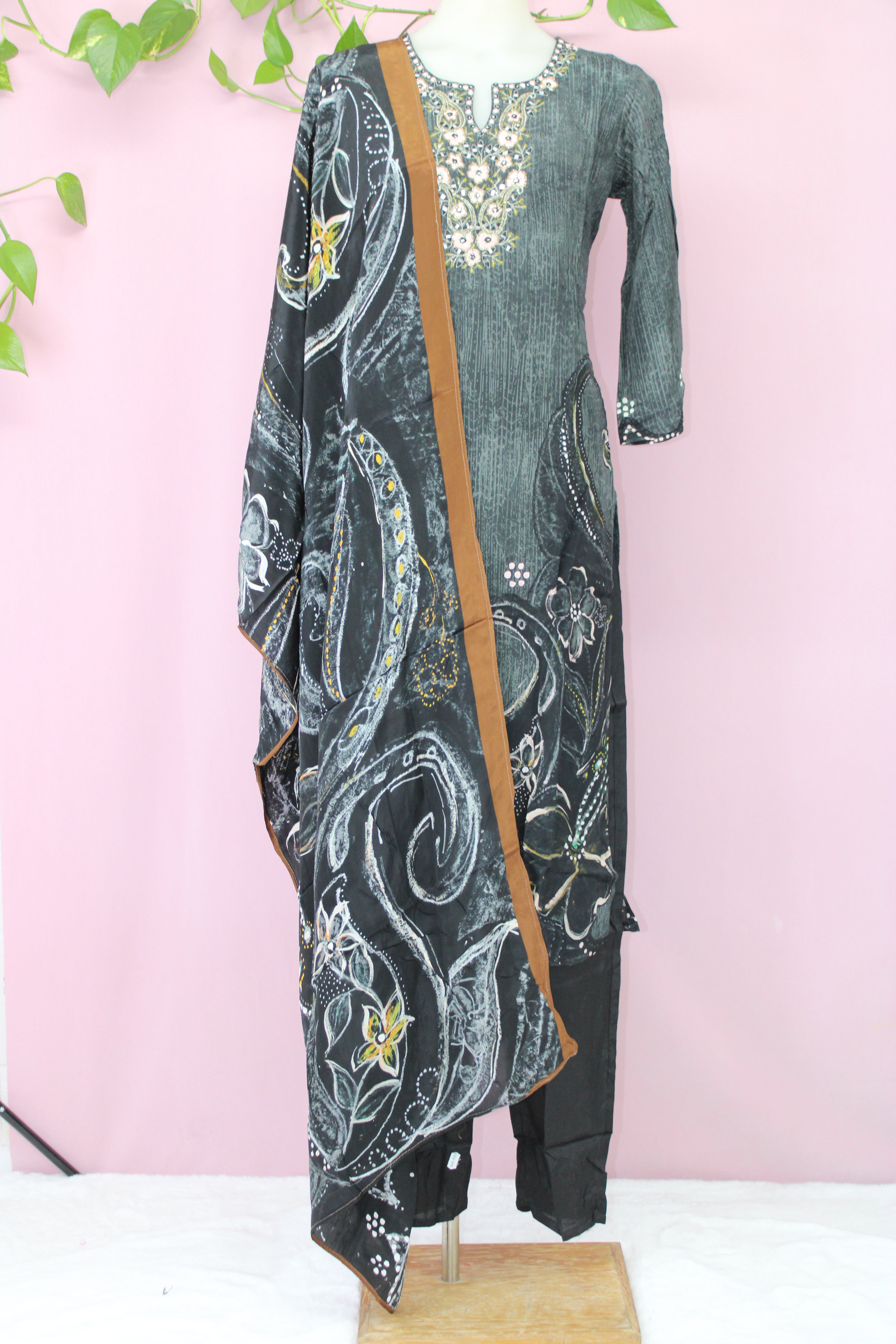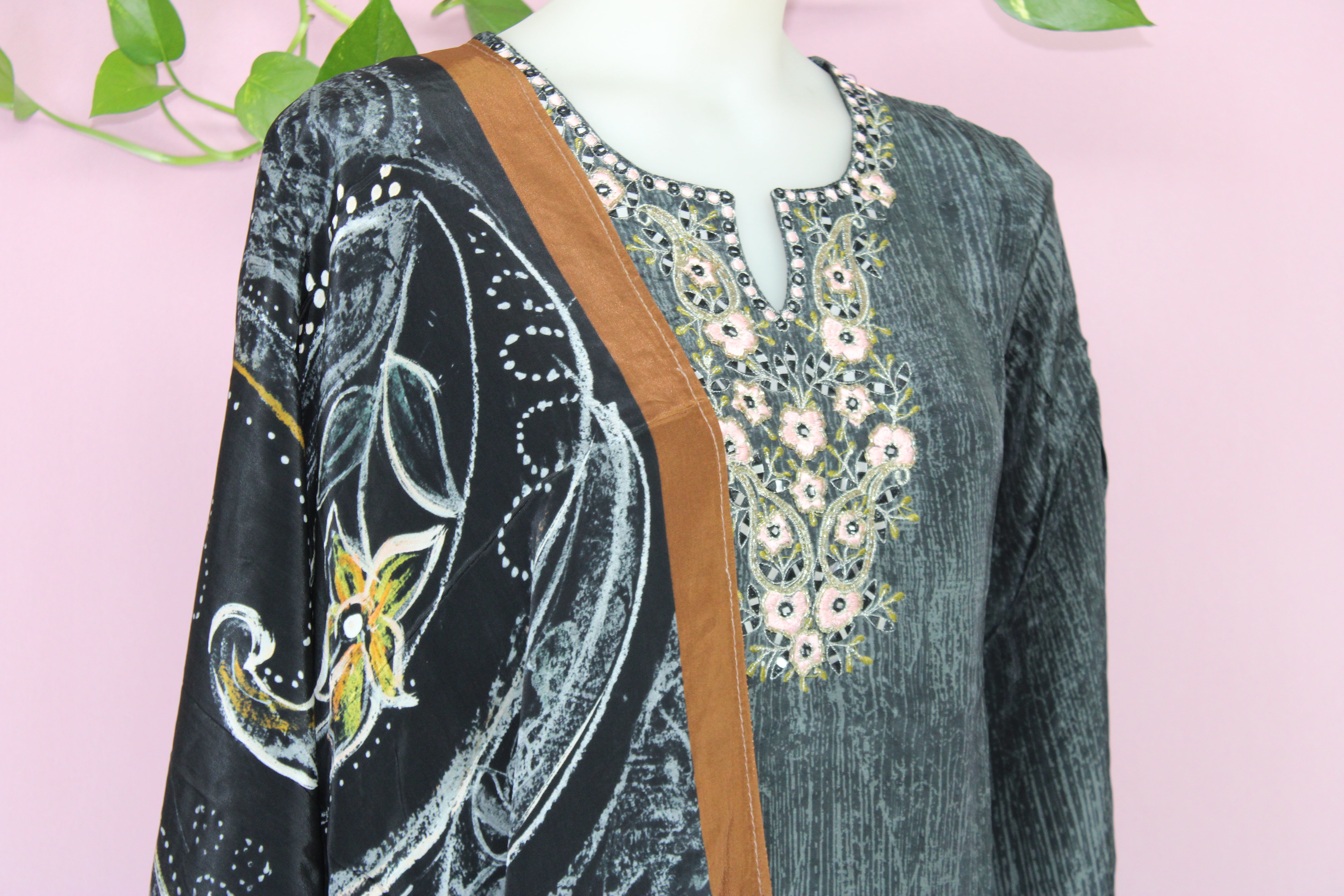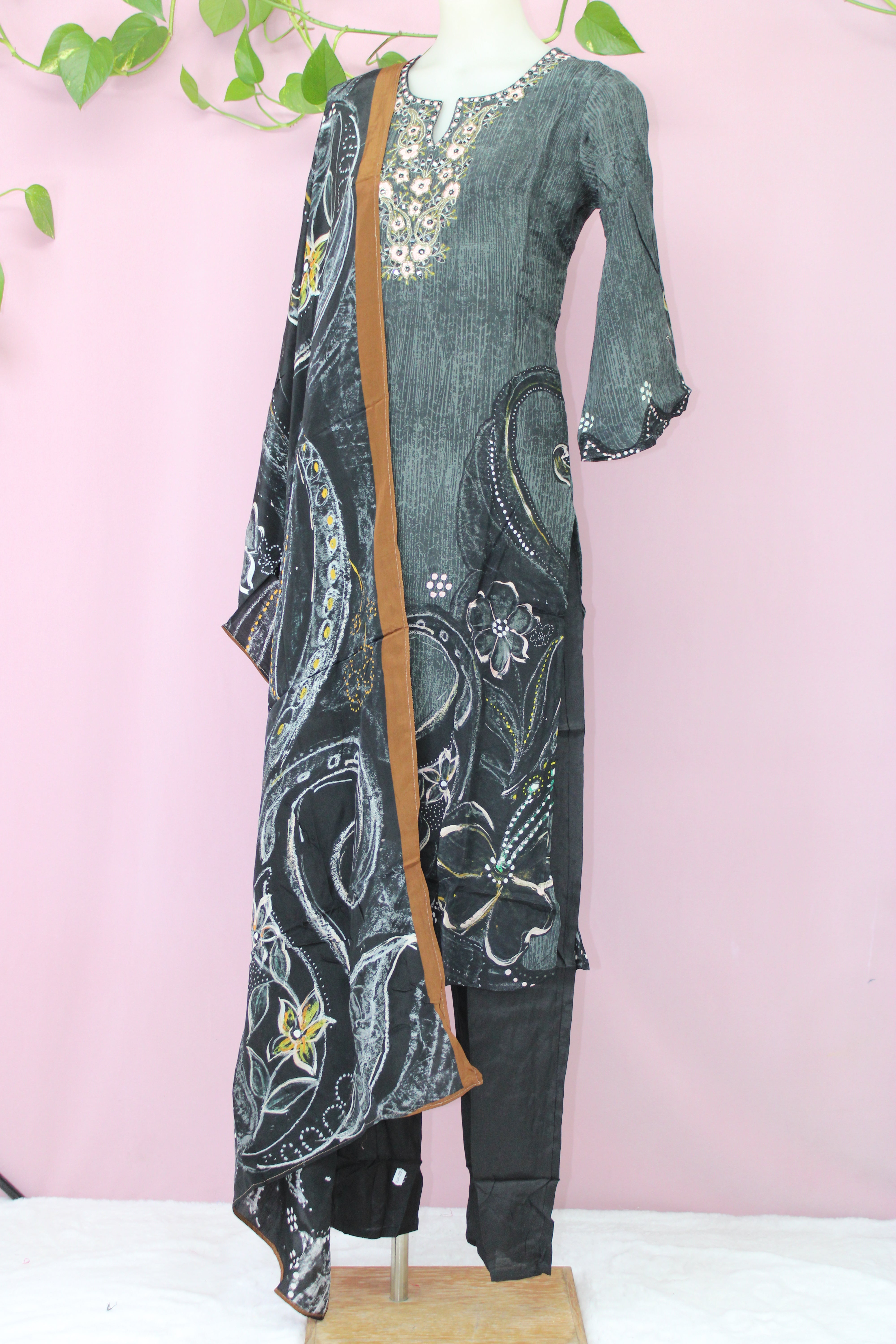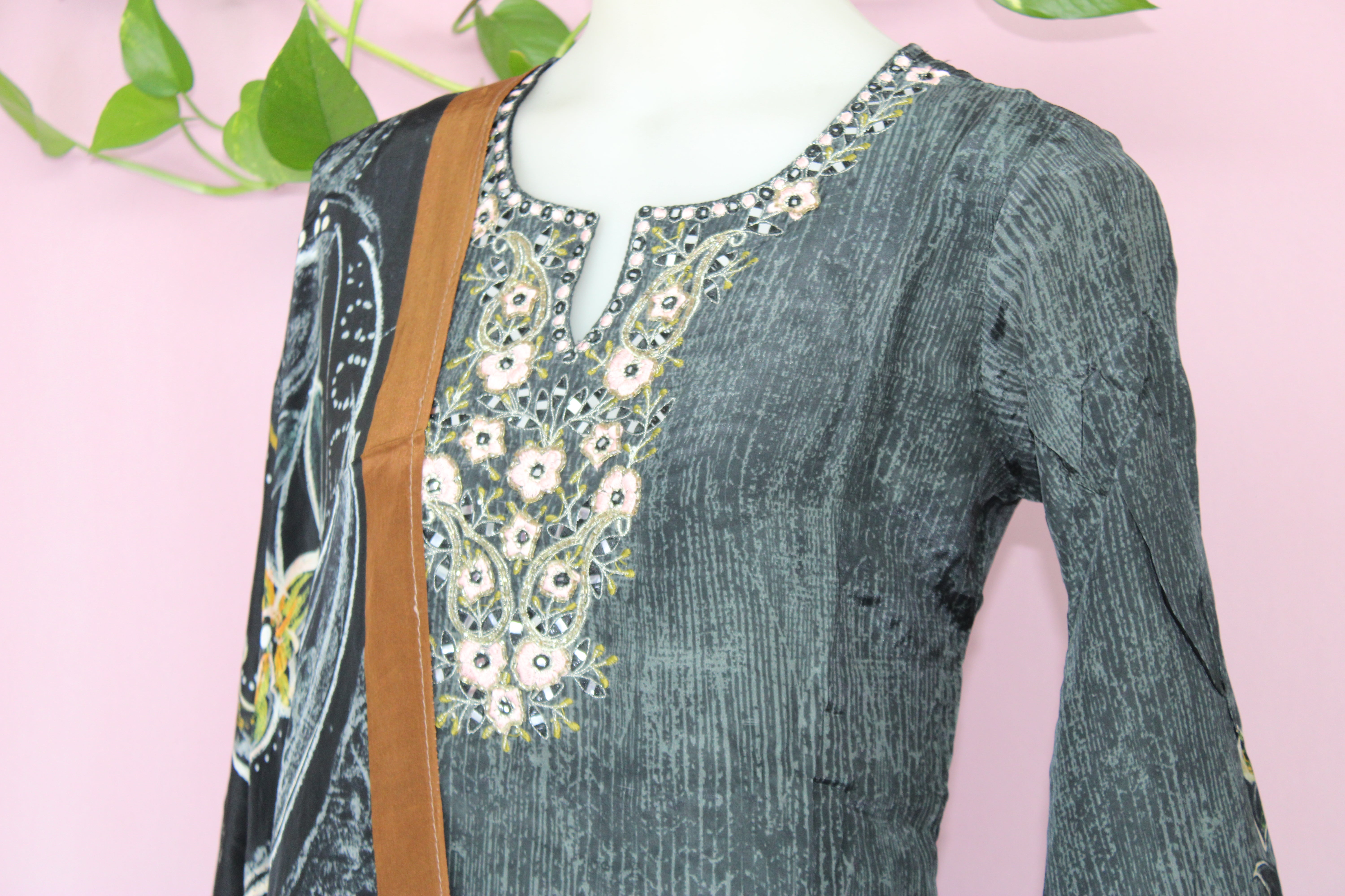 Elegant Crape Silk Ensemble with Mirror Work & Digital Prints