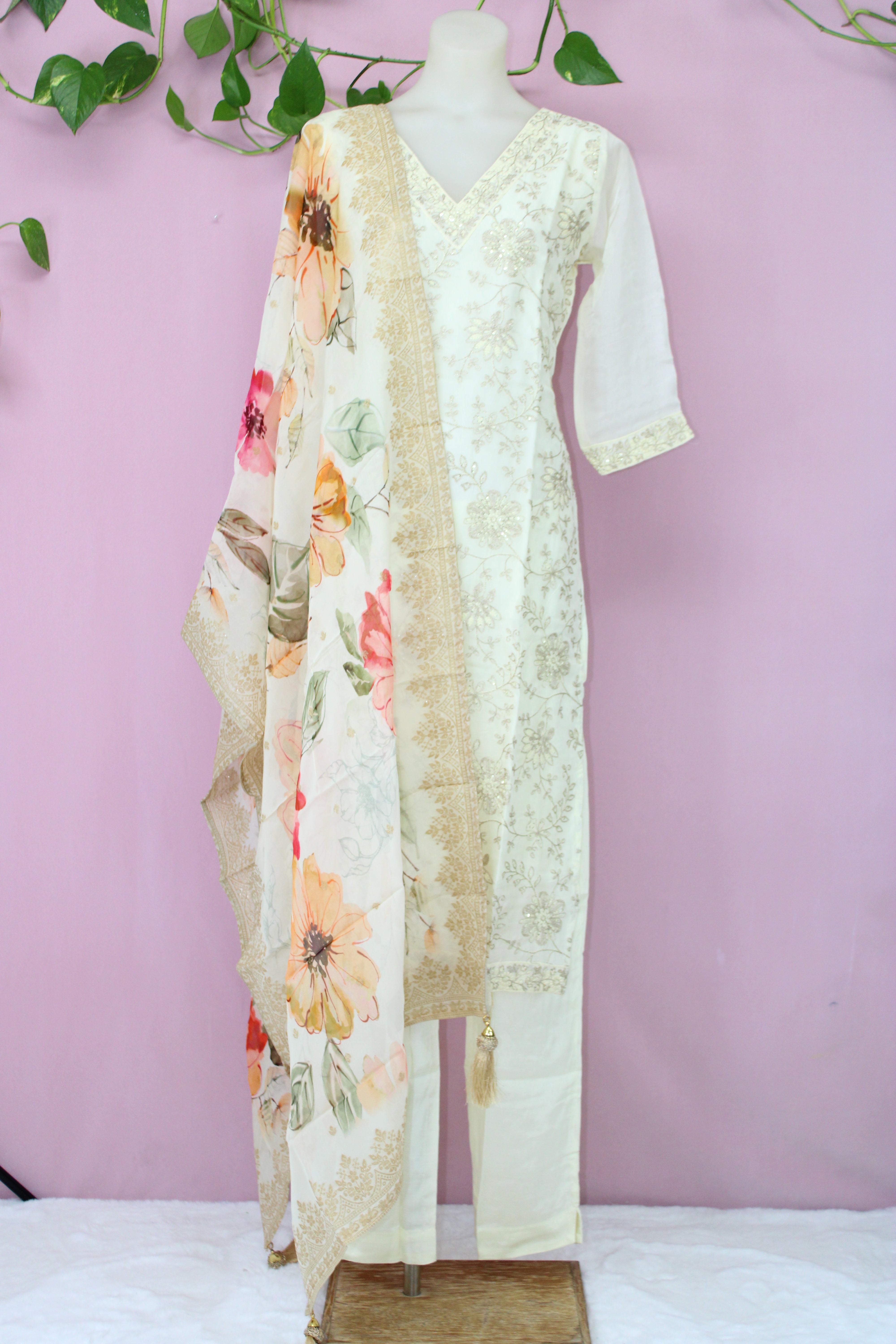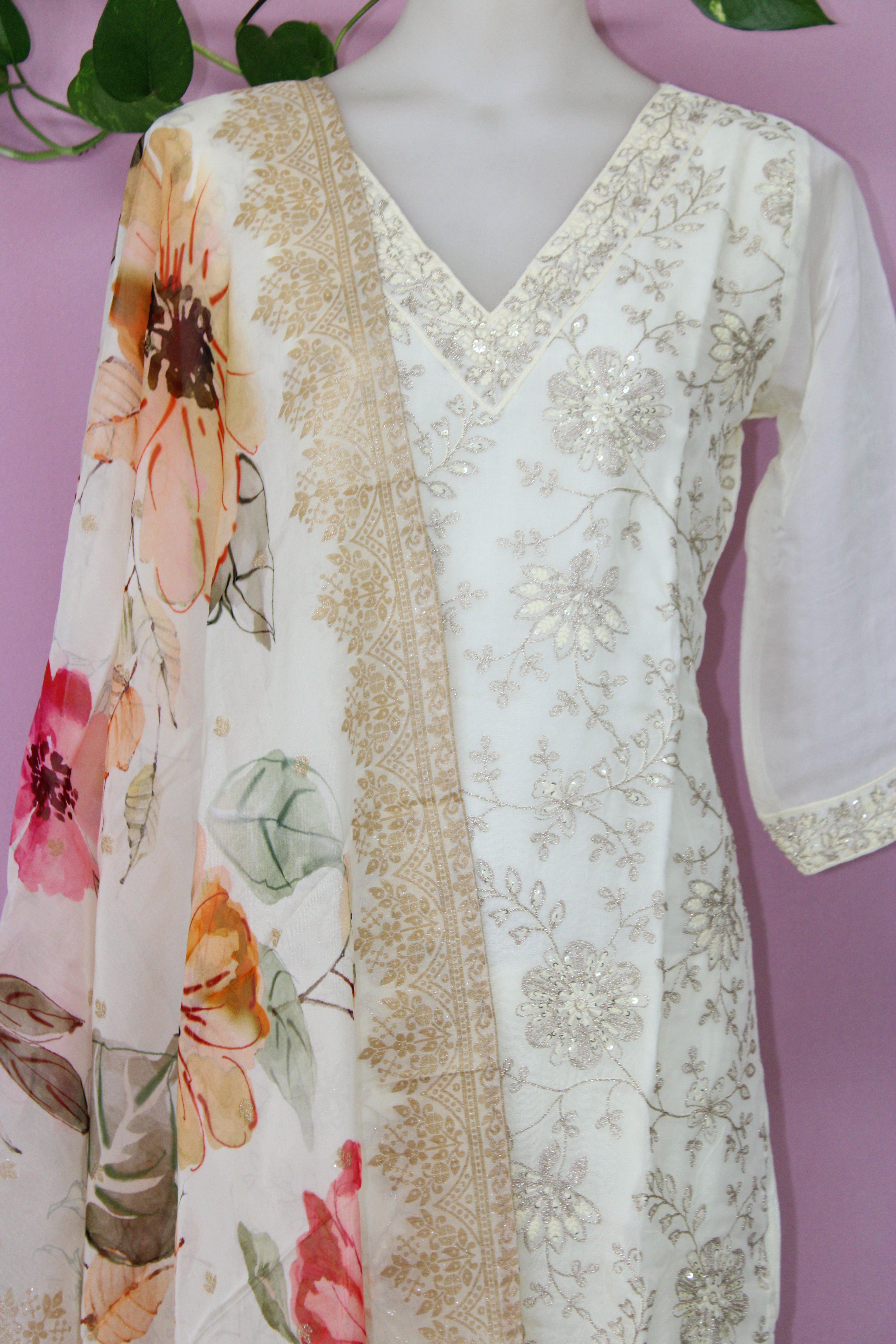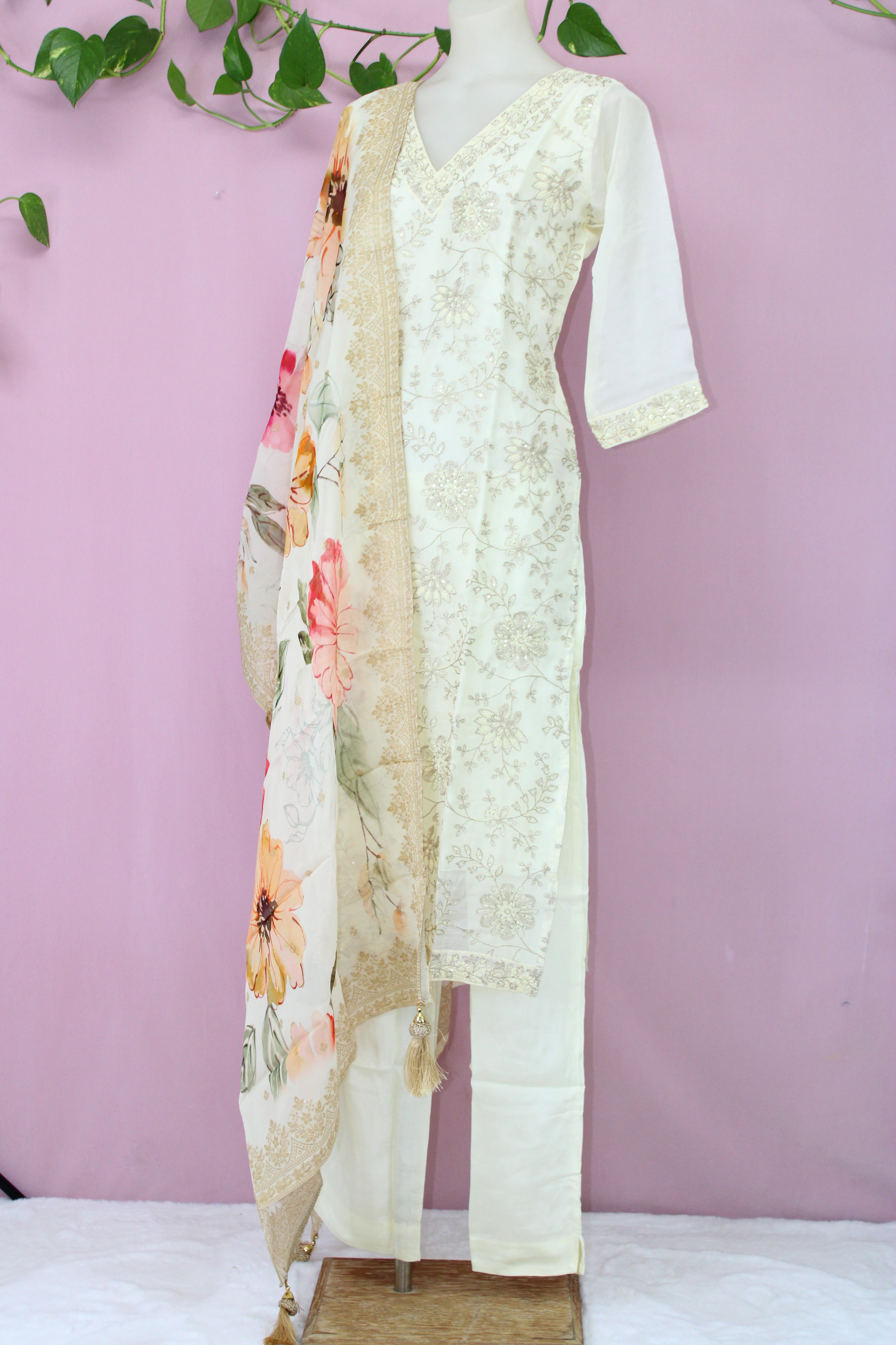 Embrace elegance with this exquisite outfit, crafted from delicate organza fabric and adorned with intricate details that define timeless style.